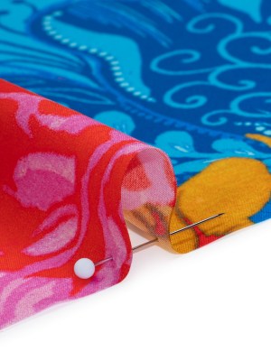 Silk Charmeuse Print 16MM, Made in Italy – Red, Blue and Gold Floral and Abstract Stripes
