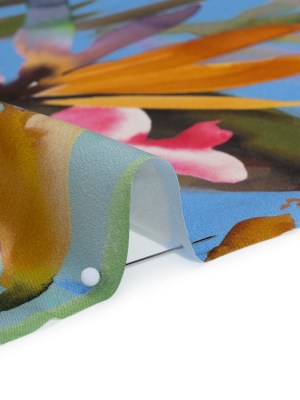 Silk Charmeuse Print 16MM, Made in Italy – Blue, Teal and Multicolor Watercolor Floral Border