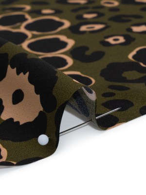 Silk Charmeuse Print 16MM, Made in Italy – Dark Olive Green, Beige and Black Animal Spots