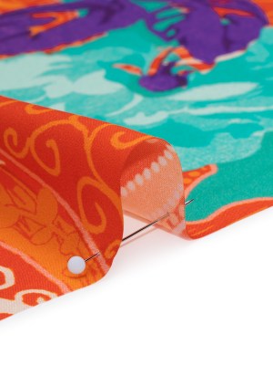 Silk Charmeuse Print 16MM, Made in Italy – Orange, Dark Mint and Purple Floral and Abstract Stripes
