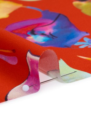 Silk Charmeuse Print 16MM, Made in Italy – Red and Rainbow Illustrated Watercolor Flowers