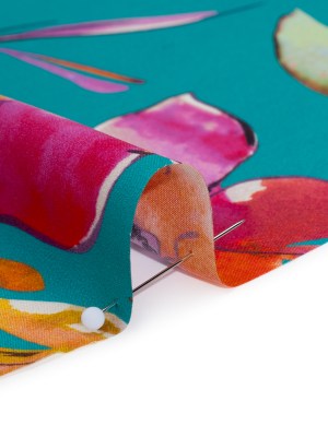 Silk Charmeuse Print 16MM, Made in Italy – Turquoise, Pink and Multicolor Illustrated Watercolor Flowers