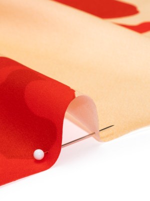 Silk Charmeuse Print – Beige, Red and Black Poppy Stems Border – Made in Italy