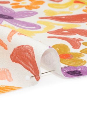 Stretch Cotton Canvas Print – Purple, Orange and Yellow Floral – Mood Exclusive Downright Dandy