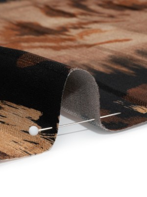 Striped Viscose Jacquard Print – Brown and Black Floral Ikat – Mood Exclusive Some Semblance