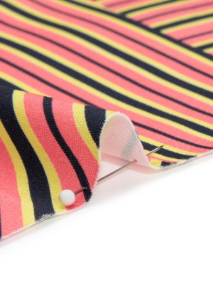 Stretch Cotton Twill Print – Pink, Yellow and Black Broken Stripes – Mood Exclusive Outta Line