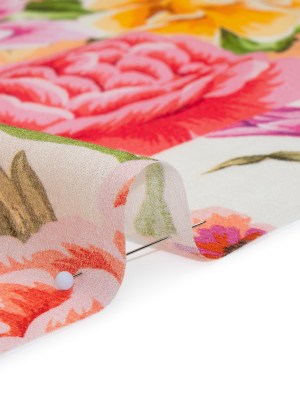 Cotton Crepe – Pink, Peachy Orange and Golden Yellow Patchwork Roses – Mood Exclusive Rosette Haze Print