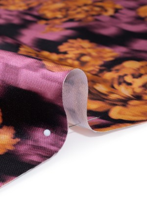 Polyester Mikado – Orange, Pink and Black Ikat Roses – Mood Exclusive Echoed Illusions Print