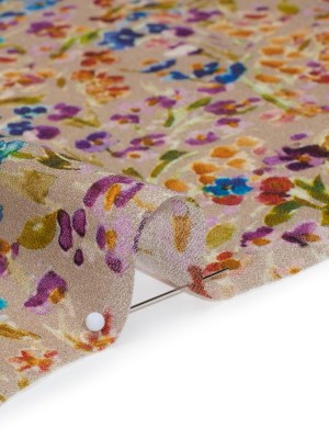 Cotton Crepe – Taupe and Rainbow Painted Flowers – Mood Exclusive Prismatic Petals Print