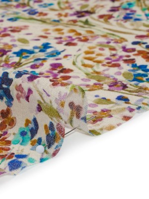 Cotton Crepe – Cream and Rainbow Painted Flowers – Mood Exclusive Prismatic Petals Print