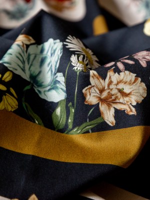 Mood Exclusive Fall Flowerbeds Navy and Gamboge Stretch Cotton Sateen
