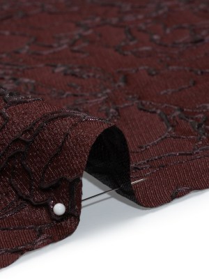 Metallic Luxury Brocade – Burgundy Floral Outlines