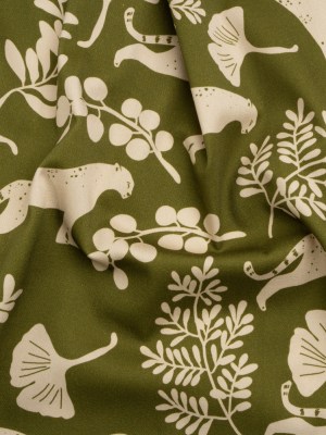 Stretch Cotton Twill Print – Green Big Cats and Leaves – Mood Exclusive Stoic Seer