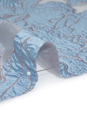 Metallic Burnout Brocade – Sky Blue and Baby Pink All-Over Outlined Flowers