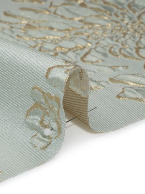 Metallic Brocade – Pale Mint and Gold Blossoming Stems