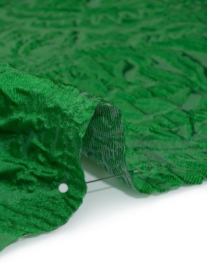 Polyester Brocade – Monochrome Kelly Green Roses and Leaves