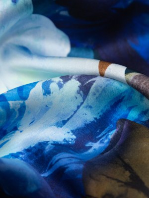 Mood Exclusive Italian Peacoat and Gray Mist Painterly Floral Digitally Printed Silk Charmeuse