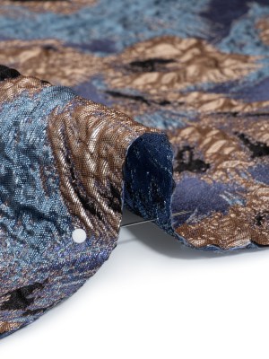 Metallic Luxury Brocade – Sky Blue, Gold and Navy Abstract Flora