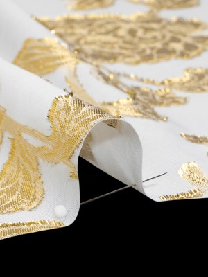 Metallic Burnout Brocade – White and Gold Floral – Designer Deadstock