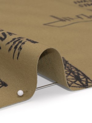 Cotton Twill Print – Khaki and Black Sketches and Stencils – Deadstock