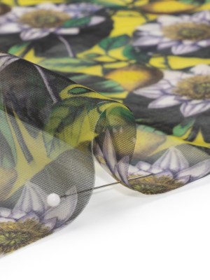 Polyester and Viscose Organza – Yellow and Green Lemons and Lily Pads