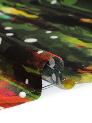 Silk Charmeuse Panel 16MM, Made in Italy – Olive Green, Red and Yellow Streaks and Spots