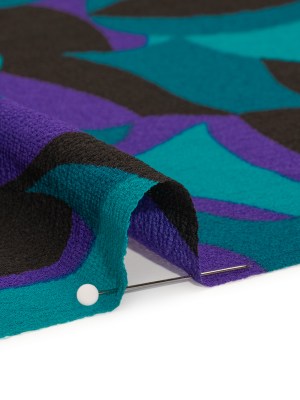Stretch Polyester Crepe Print – Teal, Purple and Black Abstract – Designer Deadstock
