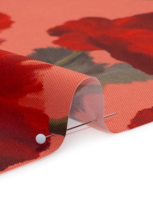 Peached Polyester Twill – Dark Pink, Green and Red Poppies and Leaves – Mood Exclusive A Portrait of Poppies Print