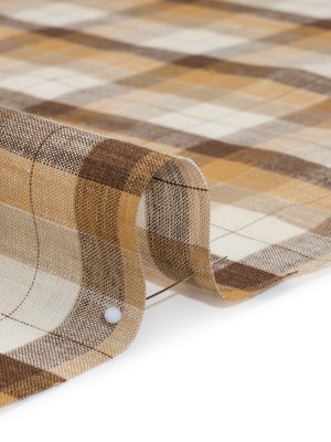 Medium Weight Linen Woven – Beige, Brown and Cream Plaid