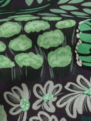 Stretch Cotton Twill Print – Green Mushrooms and Flowers – Mood Exclusive Woodland Escape