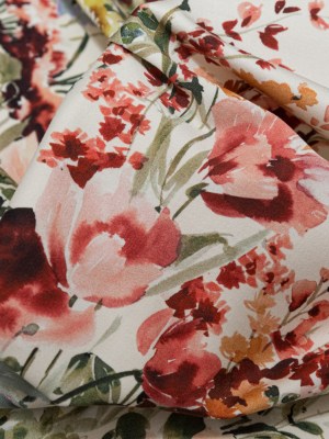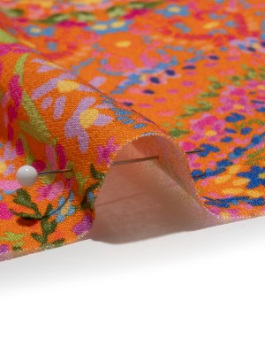 Mood Exclusive Italian Green and Orange Painterly Floral Digitally Printed Silk Charmeuse