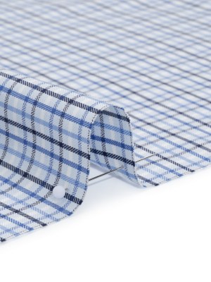 Cotton Herringbone Twill Shirting – Blue, Navy and White Plaid – Deadstock