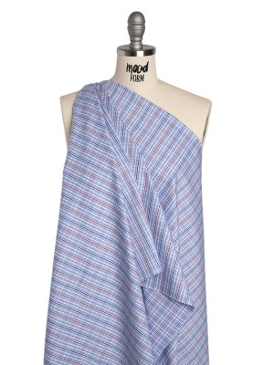 Cotton Twill Shirting – Light Blue, Navy and Red Plaid – Deadstock