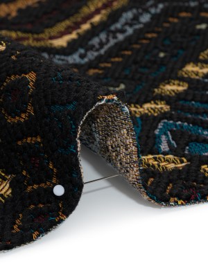 Textured Polyester and Cotton Jacquard Made in Italy – Black, Teal and Golden Yellow Organic Chevrons – Deadstock
