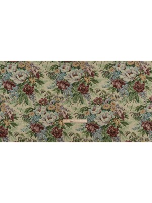 Polyester and Cotton Jacquard Made in Italy – Wine Red, Leaf Green, and Yellow Rose Garden – Deadstock