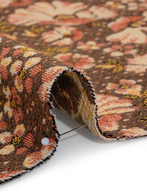 Polyester and Cotton Jacquard Made in Italy – Dark Peach, Mustard Yellow and Brown Floral – Deadstock