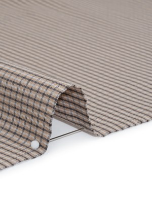 Cotton Twill – Beige, Black and White Striped Checks – Deadstock