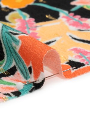 Textured Burnout Brocade – Metallic Black Circles and Stripes – Deadstock