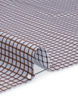Cotton Herringbone Twill Shirting – Brown and Pale Blue Checks – Deadstock