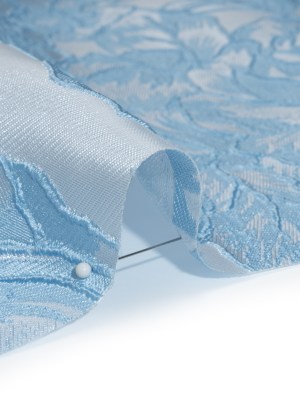 Metallic Brocade – Monochrome Aqua Blue Floating Blossoms