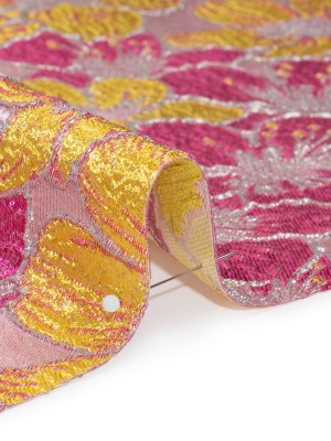 Metallic Brocade – Bright Pink, Yellow and Silver Floating Blossoms