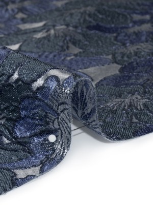 Metallic Brocade – Navy, Blue and Steel Gray Floating Blossoms