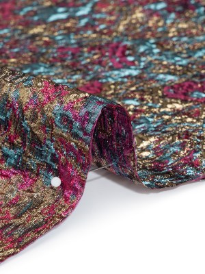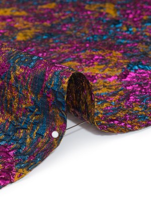 Metallic Brocade – Dark Mustard, Teal and Magenta Abstract Sponge Texture
