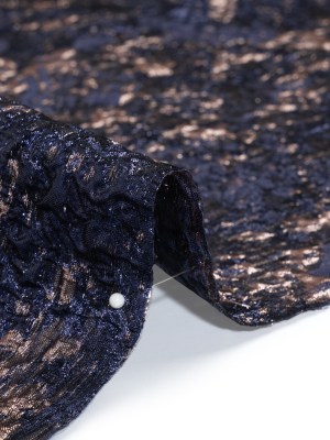 Metallic Brocade – Black and Navy Abstract Sponge Texture