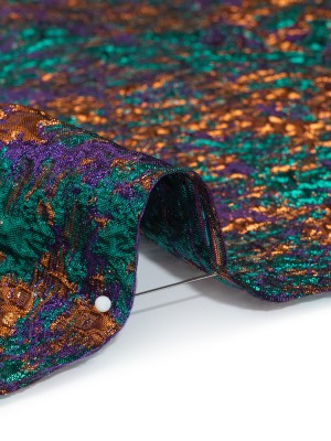Metallic Brocade – Orange, Eggplant Purple and Teal Abstract Sponge Texture