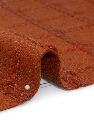 Wool Blend Boucle Tweed – Burnt Orange and Taupe Raised Windowpane Checks – Deadstock