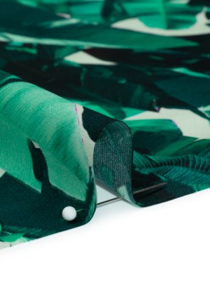 Silk Charmeuse 19mm – Dark Teal and Mint Green Tropical Leaves