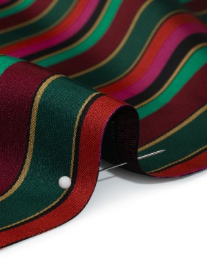 Satin-Faced Viscose and Acetate Woven – Black, Red and Green Barcode Stripes – Designer Deadstock Made in Italy