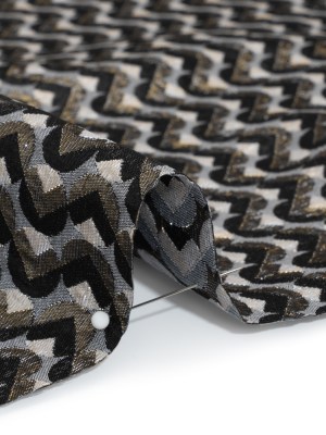 Metallic Stretch Brocade – Gray, Black and White Chevron Circles – Designer Deadstock Made in Italy