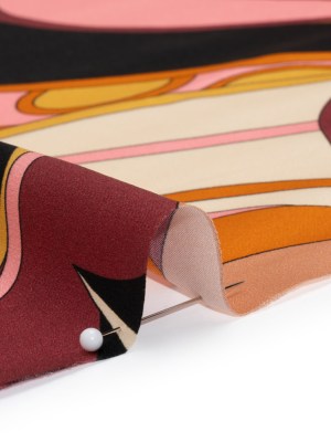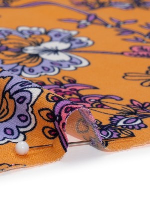 Silk Charmeuse Print – Periwinkle, Orange and Fuchsia Retro Floral Swirl – Made in Italy